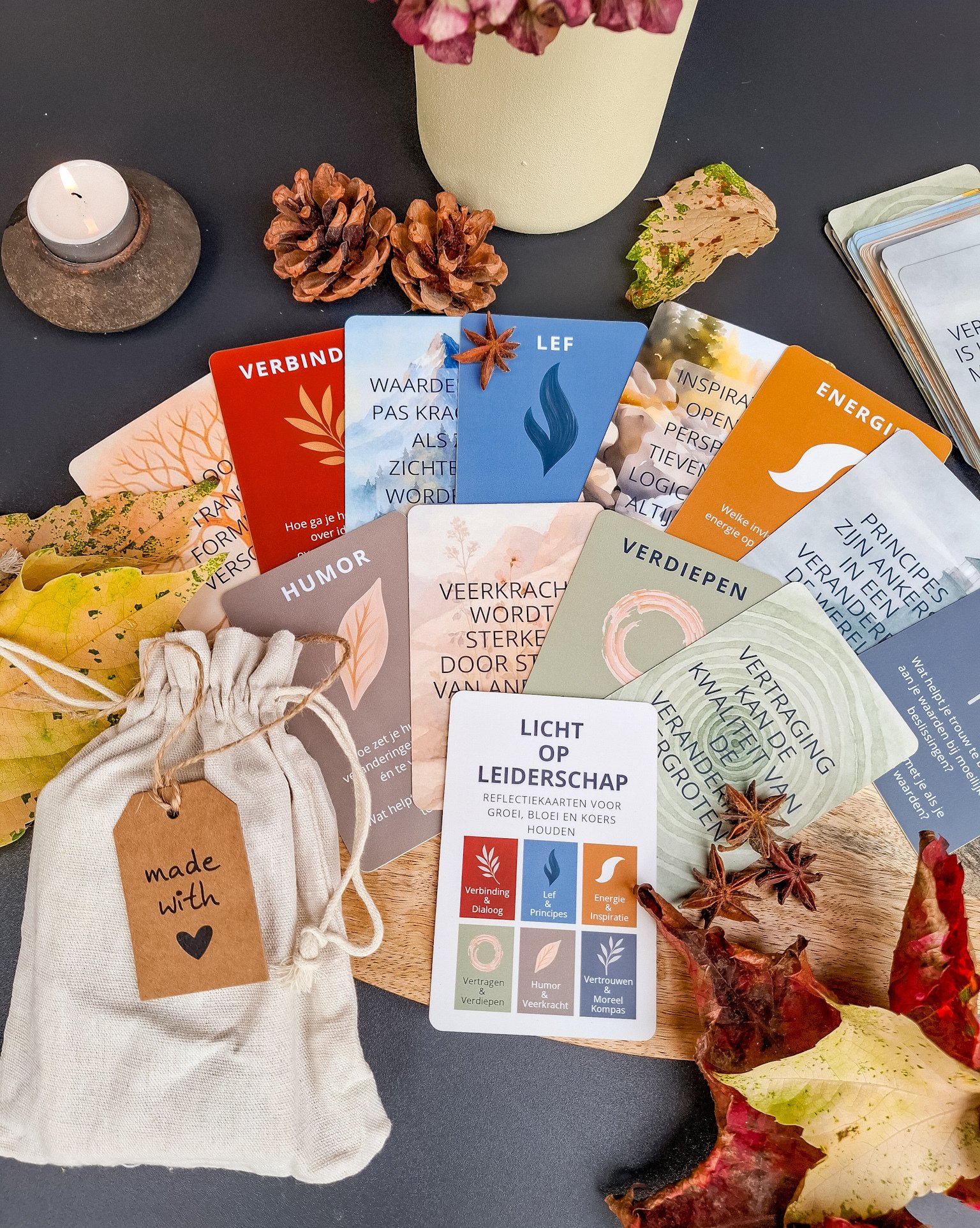 De Leiderschapsbundel – Licht op Leiderschap is een samengestelde set van kaartenset, gidsen en micro-activiteiten waarmee je: