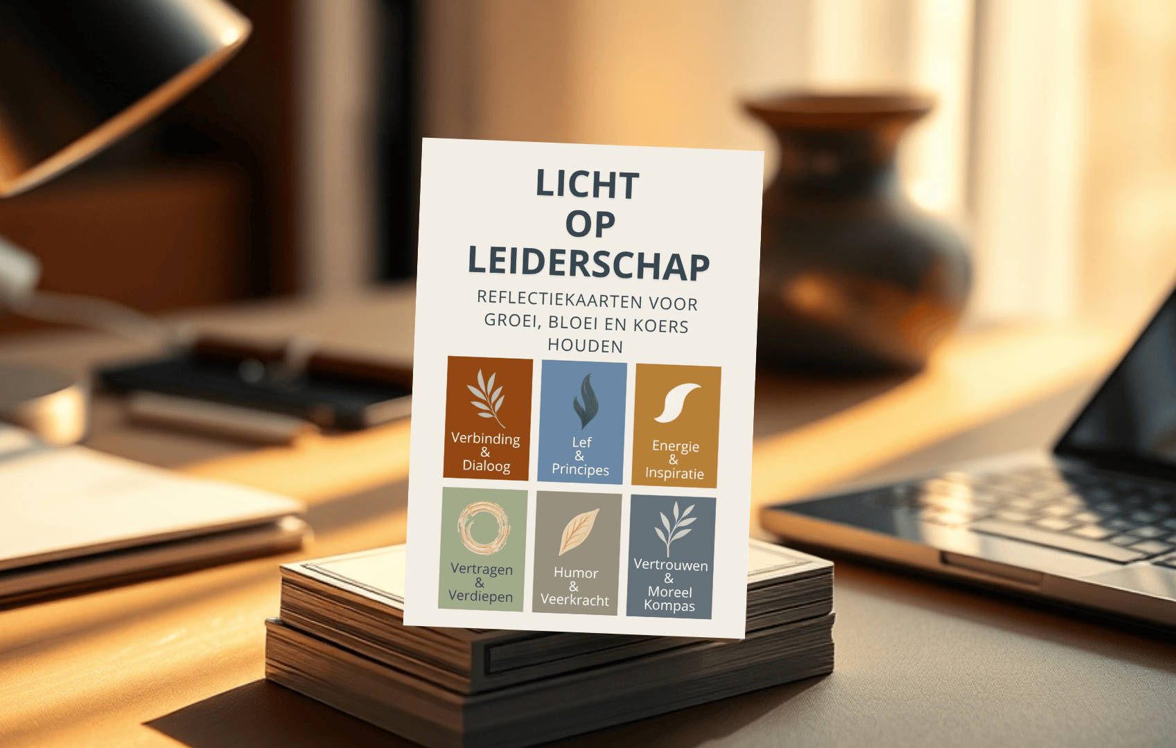 Vanuit die praktijk heb ik de kaartenset Licht op Leiderschap ontwikkeld: 52 kaarten die je helpen scherper te kijken, moediger te kiezen en menselijk te blijven in je leiderschap.